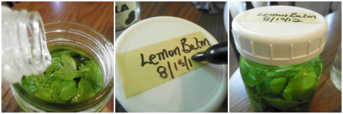 Now, simply follow the first steps again, and add the first tincture to the fresh lemon balm leaves.
